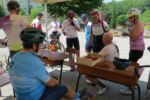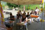 Pendant ce temps, les bénévoles, eux, n’ont pas chômé. Dès la veille, ils ont monté barnums, installé bureaux d’écoliers, décoré la place aux couleurs de l’Ardéchoise, et surtout… préparé un ravitaillement digne des plus grandes étapes : cerises du village, fromages locaux, quiches maison, gâteaux de toutes sortes… De quoi redonner des jambes à plus de 150 coureurs qui se sont arrêtés chez nous (certains peut-être à cause de la vue des cerises plus que de la fatigue…).
