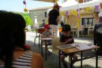 Organisée par l’Association Vivre à Valoux, l’animation a plongé le public, les coureurs et les bénévoles dans une classe à l’ancienne. Entre les grands élèves très dissipés qui récitaient à contrecœur et les petits calmes et studieux qui faisaient bien sagement leurs devoirs, sœur Bernadette a fait régner une discipline toute relative… tout en tentant d’obtenir : lecture au tableau, questions diverses, et chant chorale, et distribuant quelques réprimande bon enfant.
